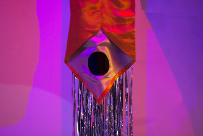 The installation is in limbo, a symbol of the American dream, which has been adopted world wide, a surrealistic hyper-colorful space, where the viewer walks through a scene, passing one absurd sculpture after another.